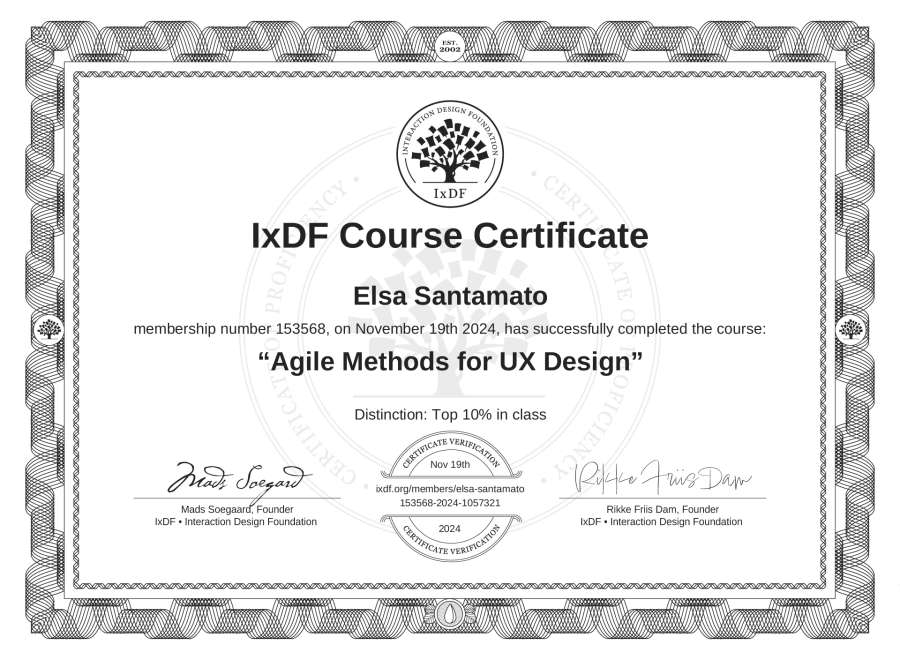 Elsa Santamato's IxDF Course Certificate: Agile Methods for UX Design
