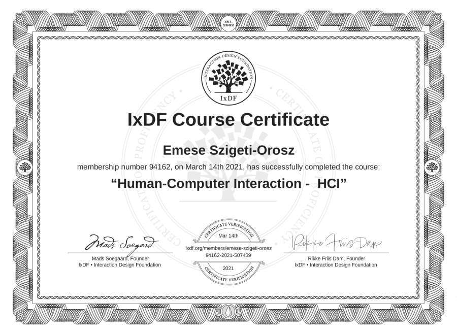 Emese Szigeti-Orosz's IxDF Course Certificate: Human-Computer Interaction - HCI