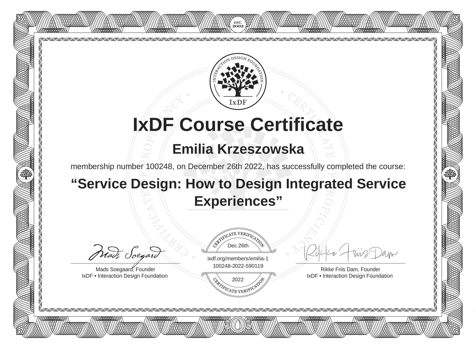 Emilia Krzeszowska's IxDF Course Certificate: Service Design: How to Design Integrated Service Experiences