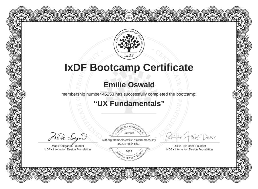 Emilie Oswald's Bootcamp Certificate: UX Fundamentals
