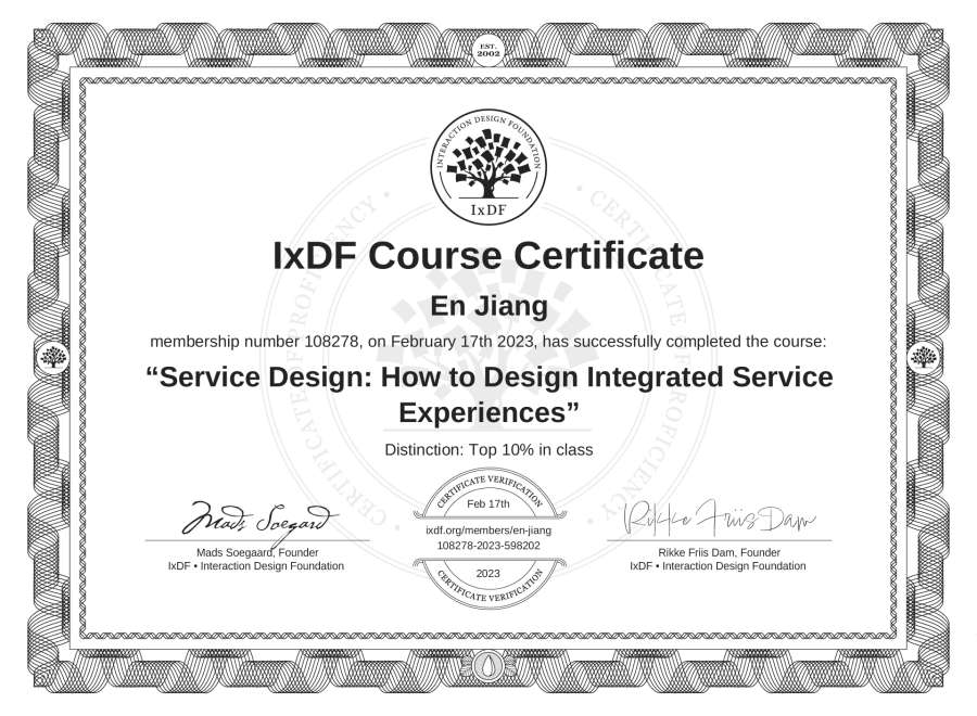 En Jiang's IxDF Course Certificate: Service Design: How to Design Integrated Service Experiences