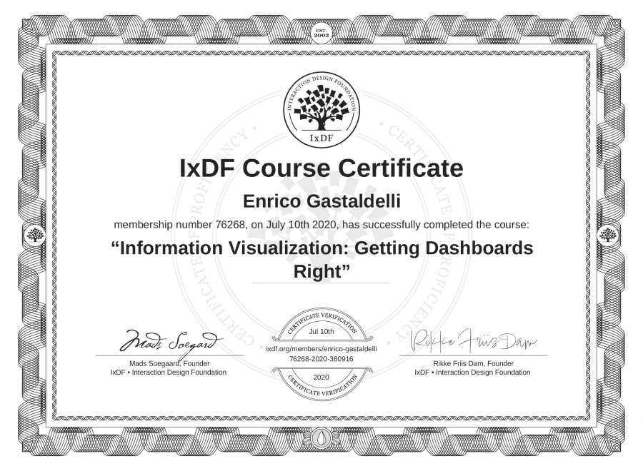 Enrico Gastaldelli's IxDF Course Certificate: Information Visualization: Getting Dashboards Right