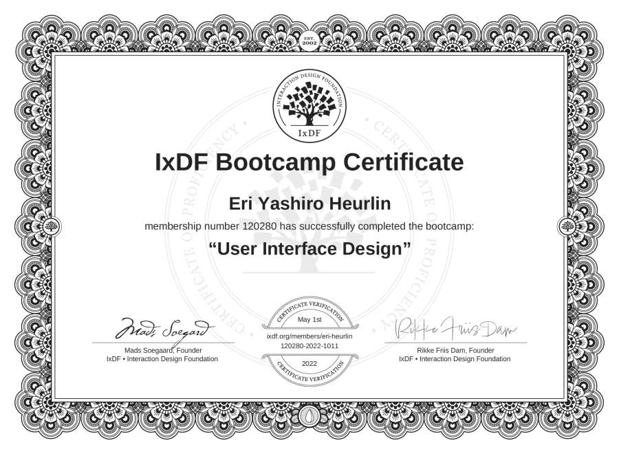 Eri Yashiro Heurlin's Bootcamp Certificate: User Interface Design