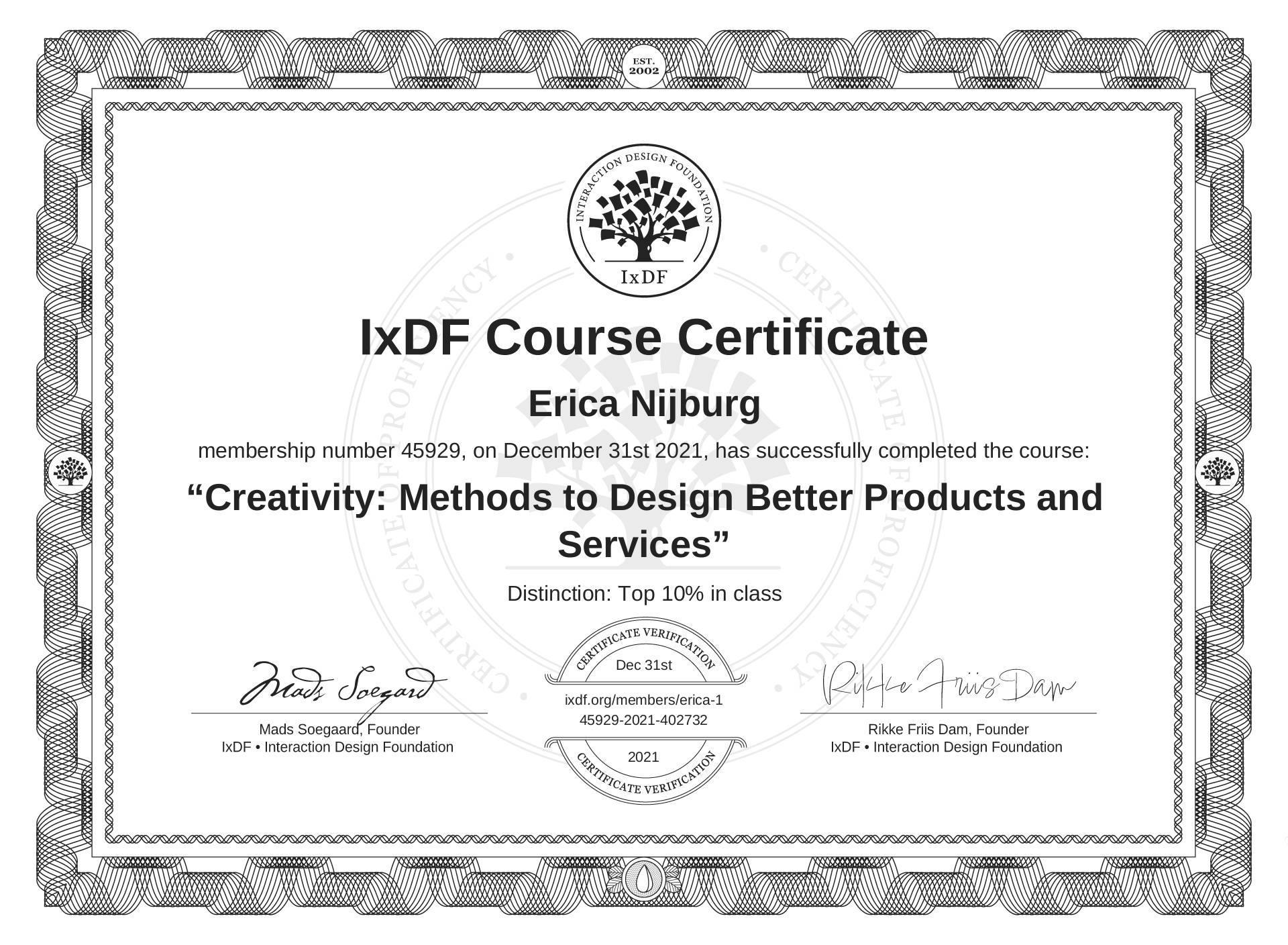 Erica Nijburg's IxDF Course Certificate: Creativity: Methods to Design Better Products and Services