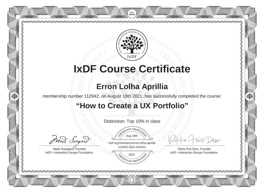 Erron Lolha Aprillia's IxDF Course Certificate: How to Create a UX Portfolio