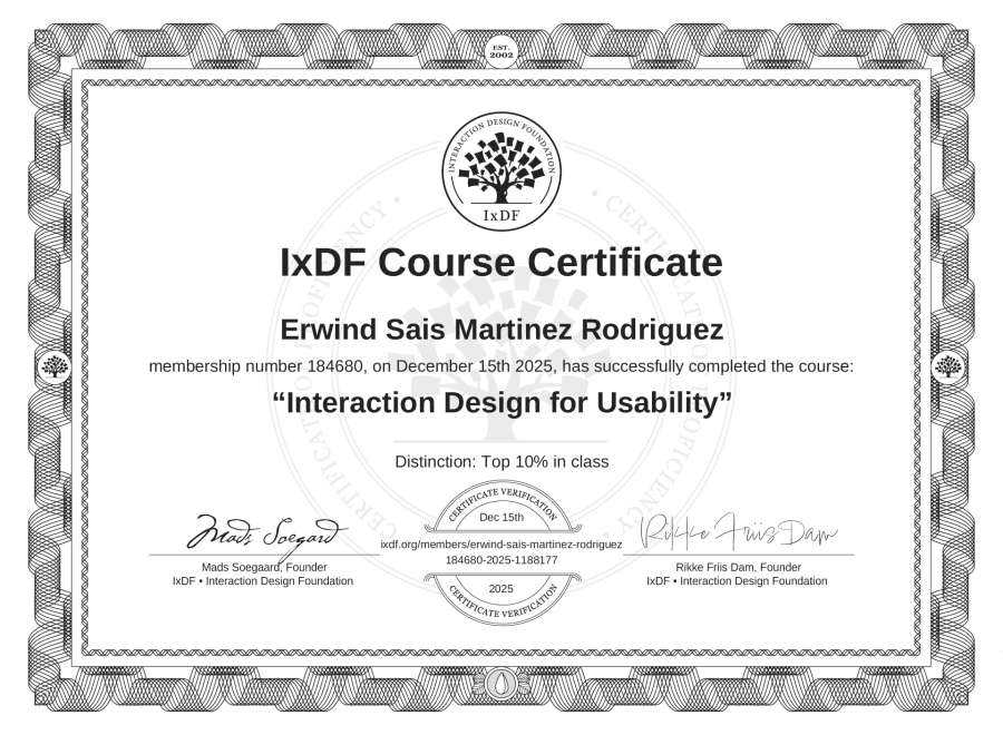 Erwind Sais Martinez Rodriguez's IxDF Course Certificate: Interaction Design for Usability