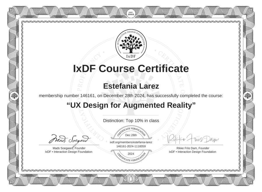 Estefania Larez's IxDF Course Certificate: UX Design for Augmented Reality