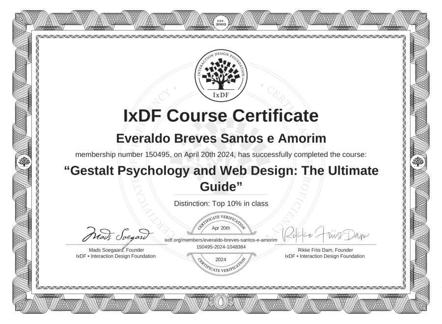 Everaldo Breves Santos e Amorim's IxDF Course Certificate: Gestalt Psychology and Web Design: The Ultimate Guide