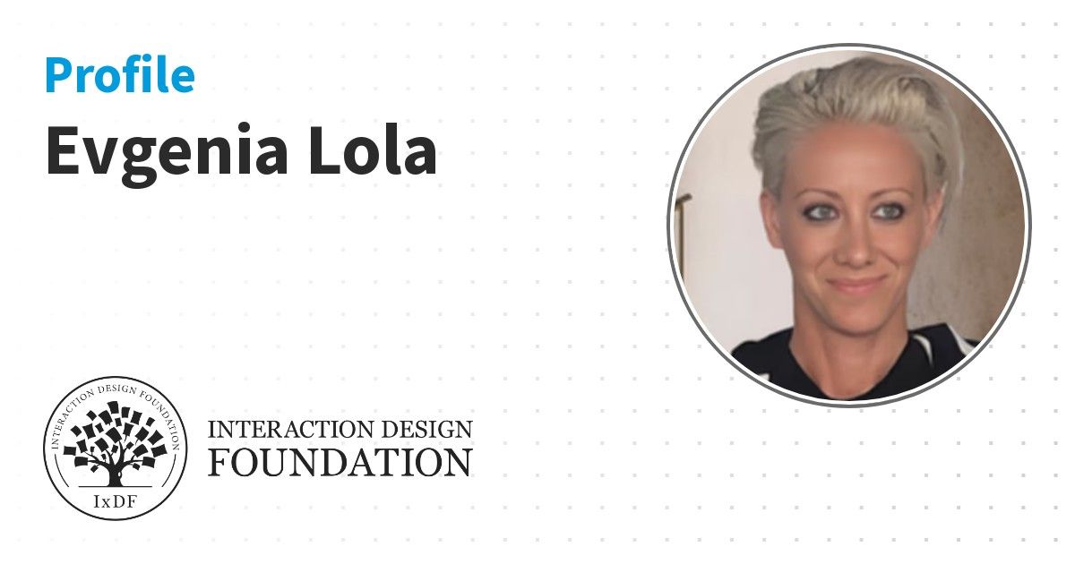 IxDF Course Certificates are awarded to Evgenia Lola in formal recognition of their coursework surpassing the rigorous benchmarks of exceptional performance established by the IxDF Educational Codex.