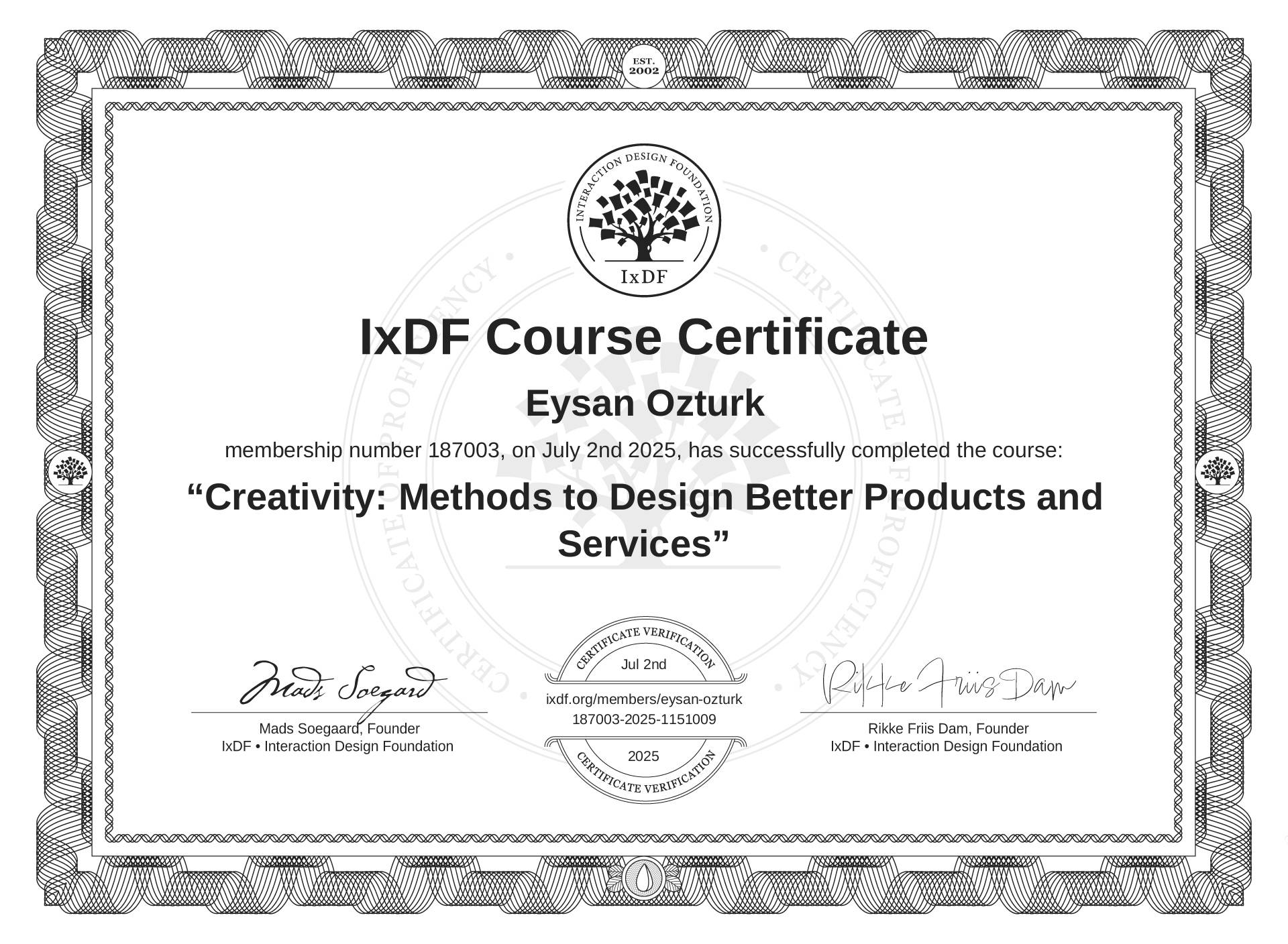 Eyşan Öztürk's IxDF Course Certificate: Creativity: Methods to Design Better Products and Services