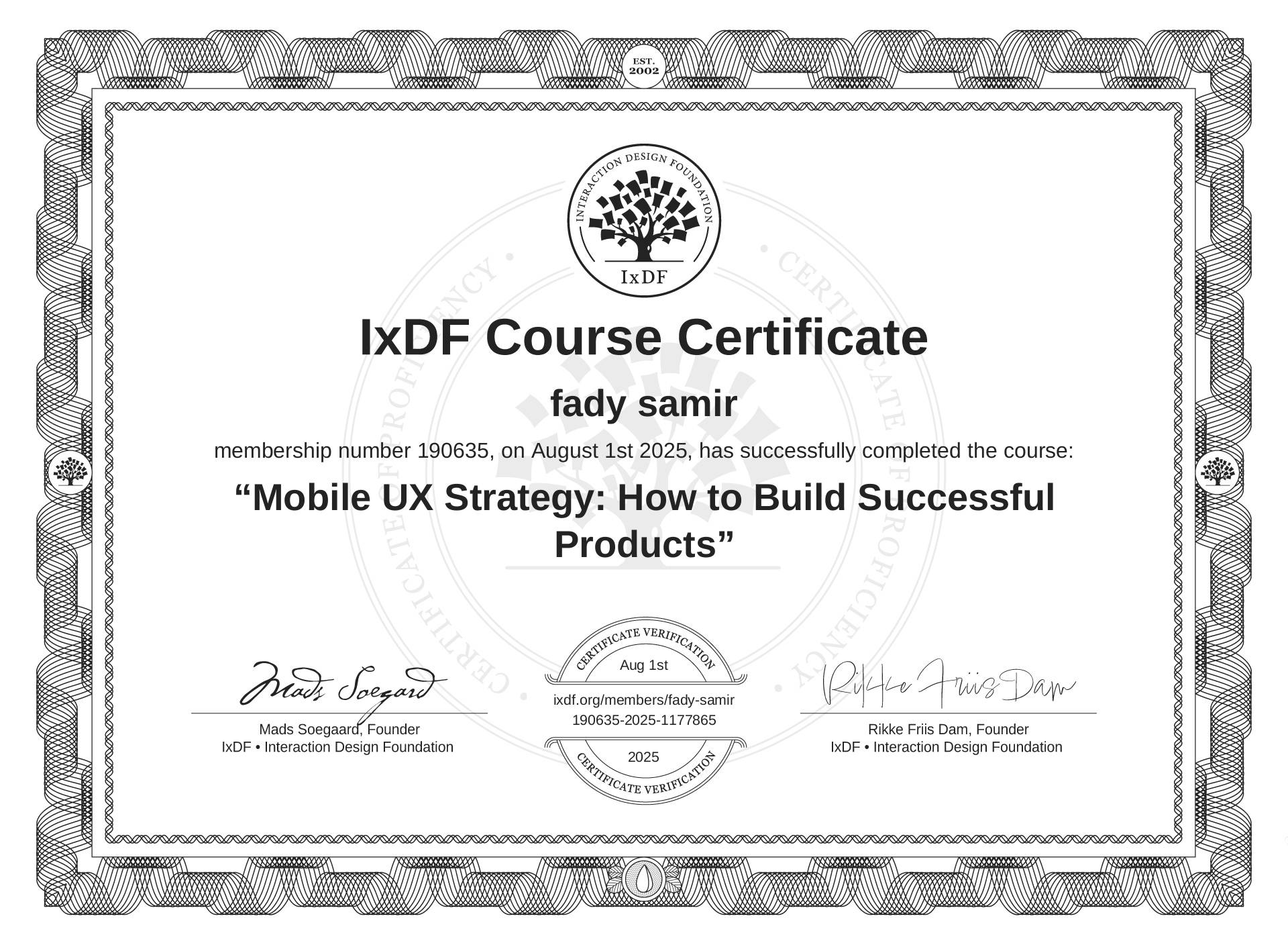 fady samir's IxDF Course Certificate: Mobile UX Strategy: How to Build Successful Products
