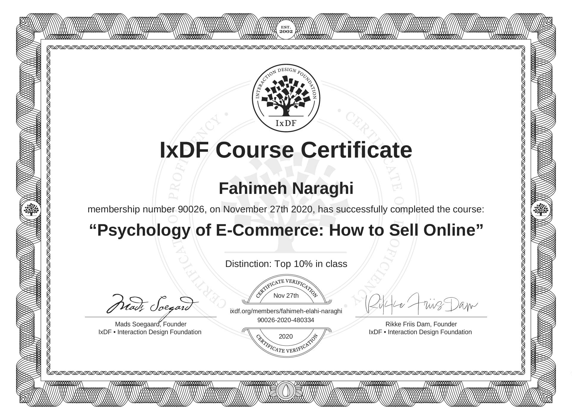 Fahimeh Naraghi's IxDF Course Certificate: Psychology of E-Commerce: How to Sell Online