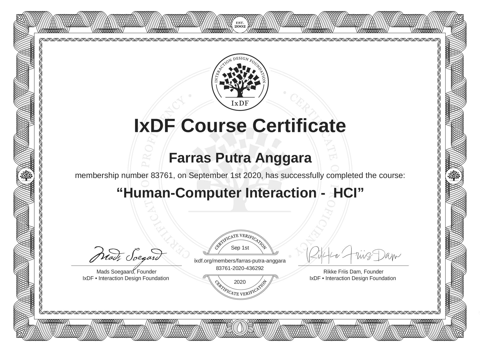 Farras Putra Anggara's IxDF Course Certificate: Human-Computer Interaction - HCI