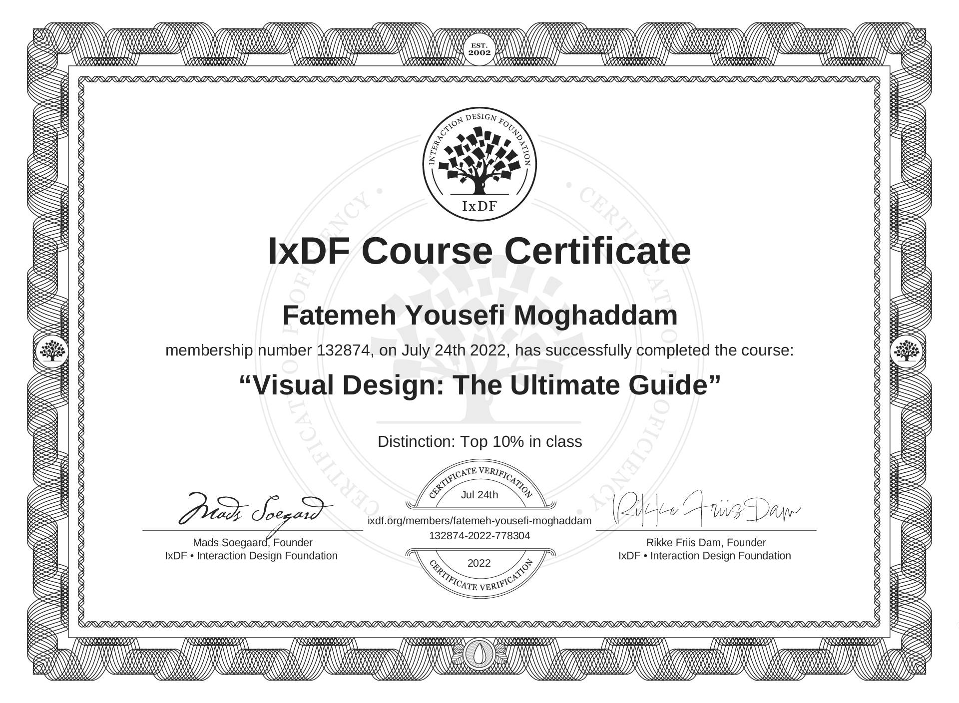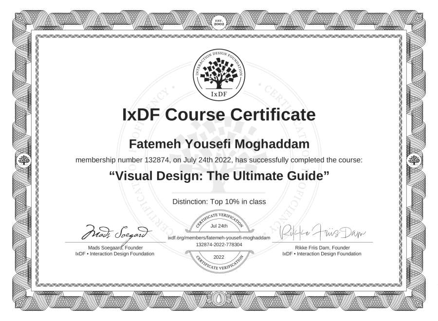 Fatemeh Yousefi Moghaddam's IxDF Course Certificate: Visual Design: The Ultimate Guide