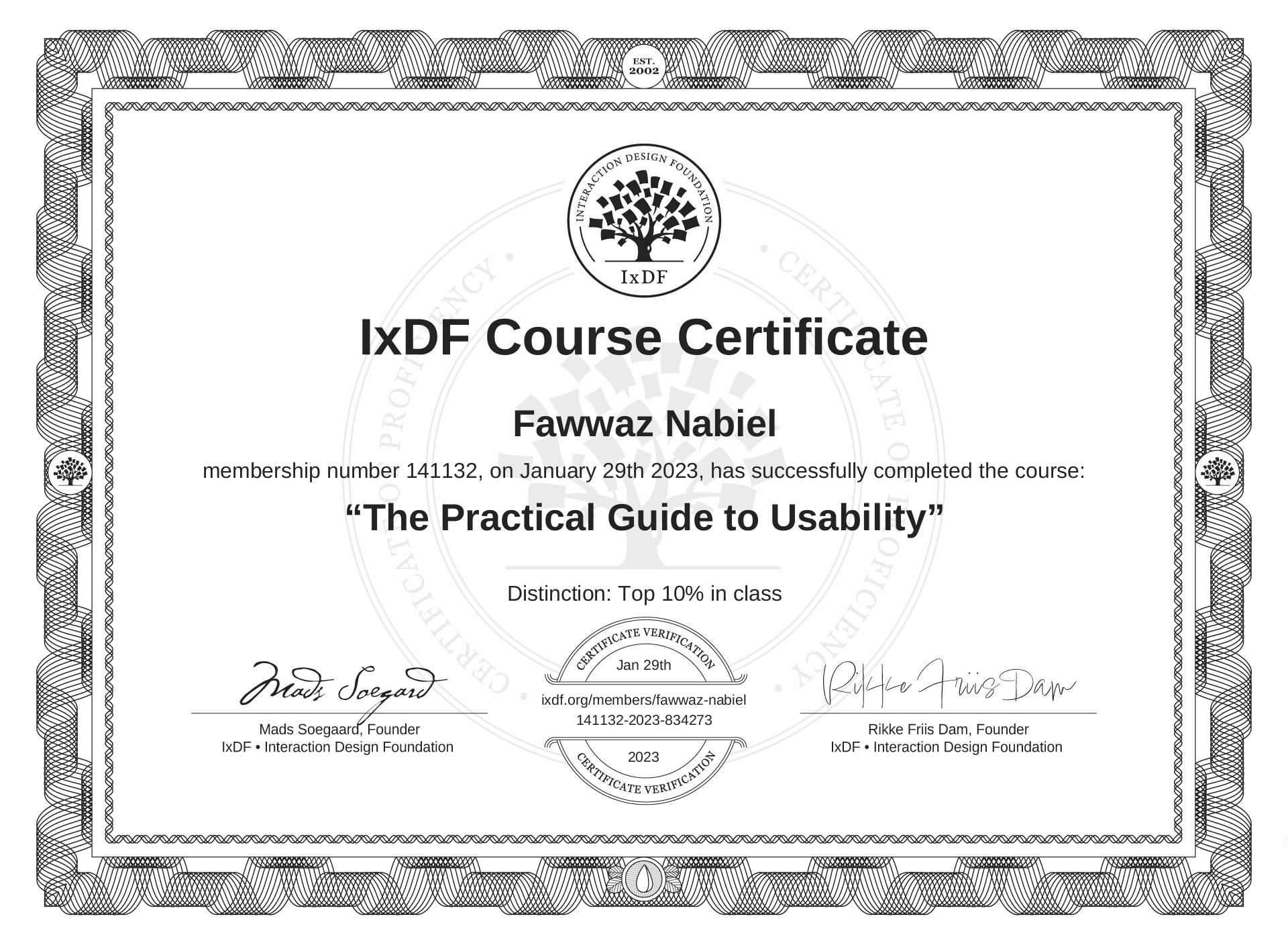 Fawwaz Nabiel's IxDF Course Certificate: The Practical Guide to Usability