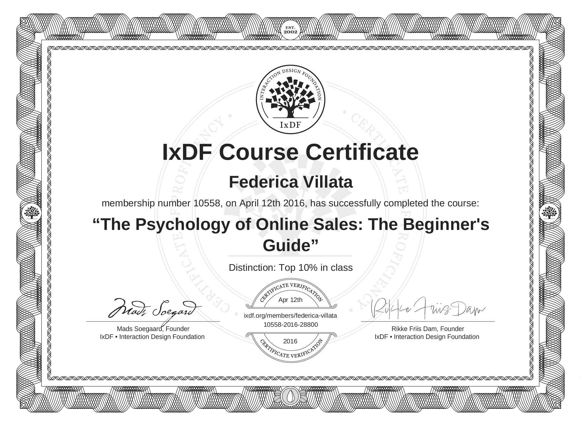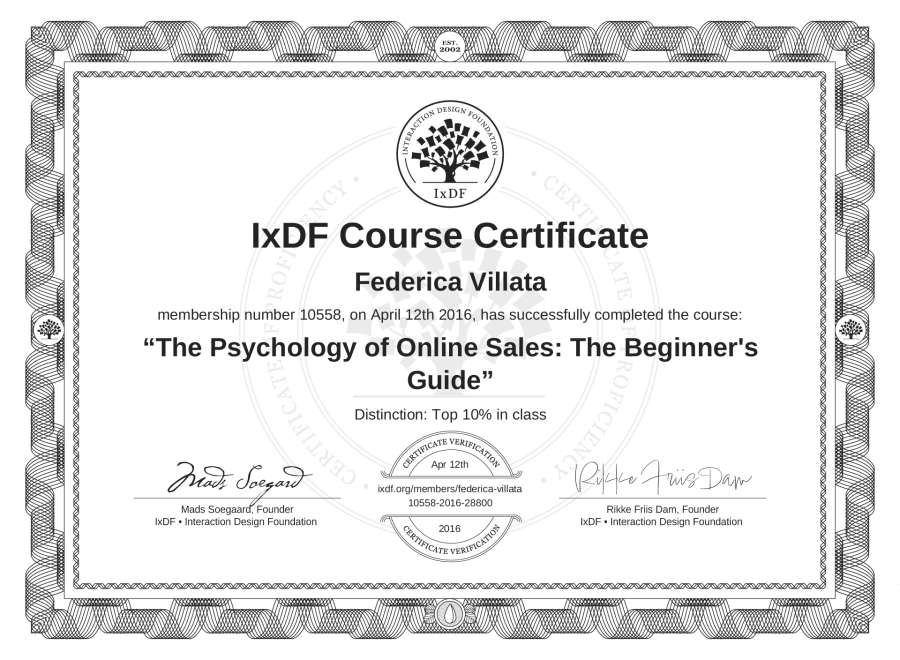 Federica Villata's IxDF Course Certificate: The Psychology of Online Sales: The Beginner's Guide