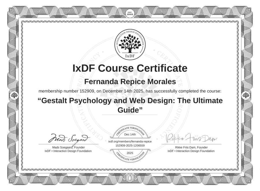 Fernanda Repice Morales's IxDF Course Certificate: Gestalt Psychology and Web Design: The Ultimate Guide