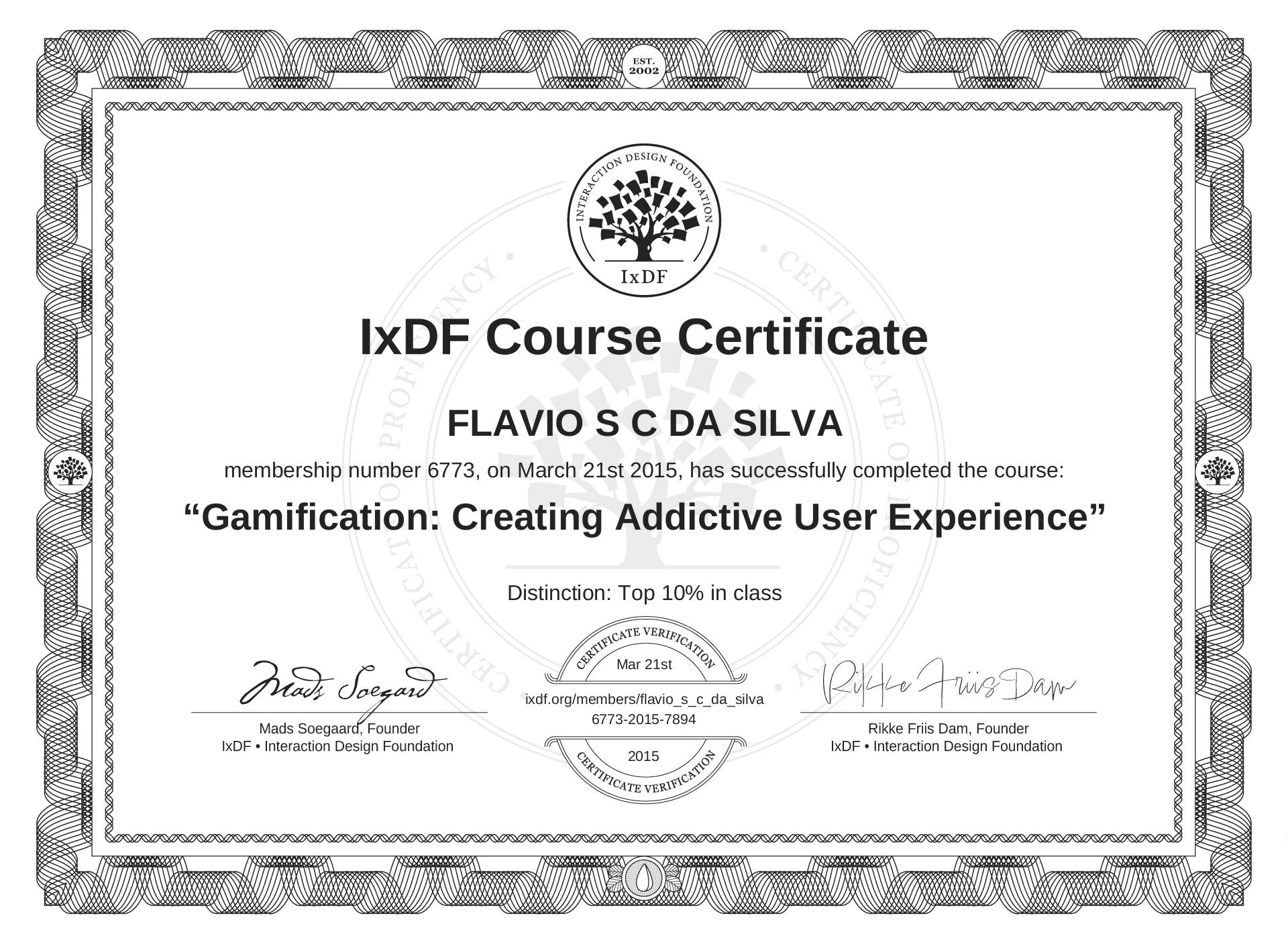FLAVIO S C DA SILVA's IxDF Course Certificate: Gamification: Creating Addictive User Experience