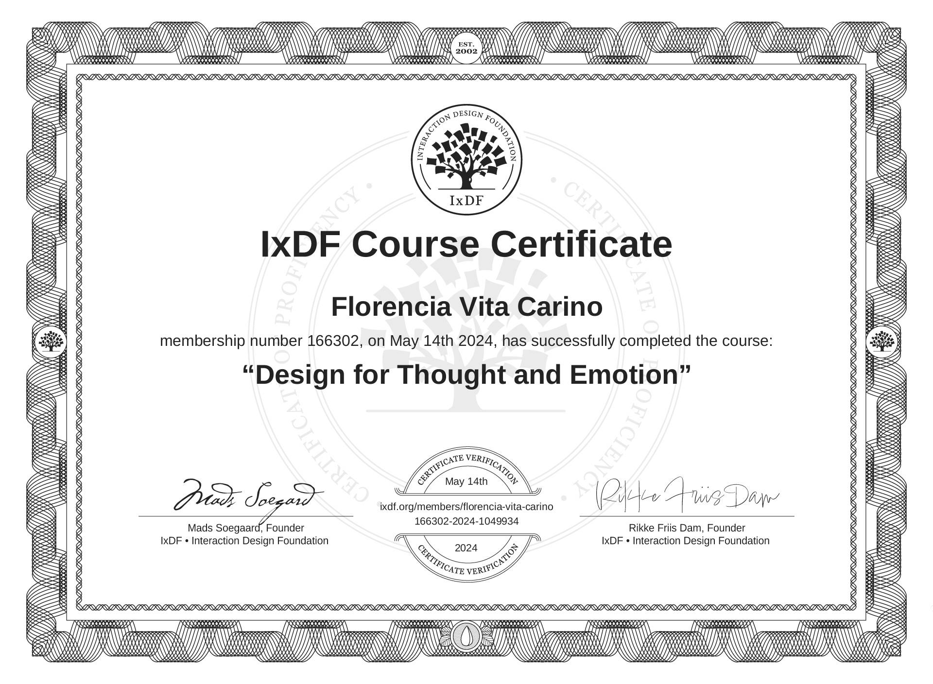 Florencia Vita Carino's IxDF Course Certificate: Design for Thought and Emotion