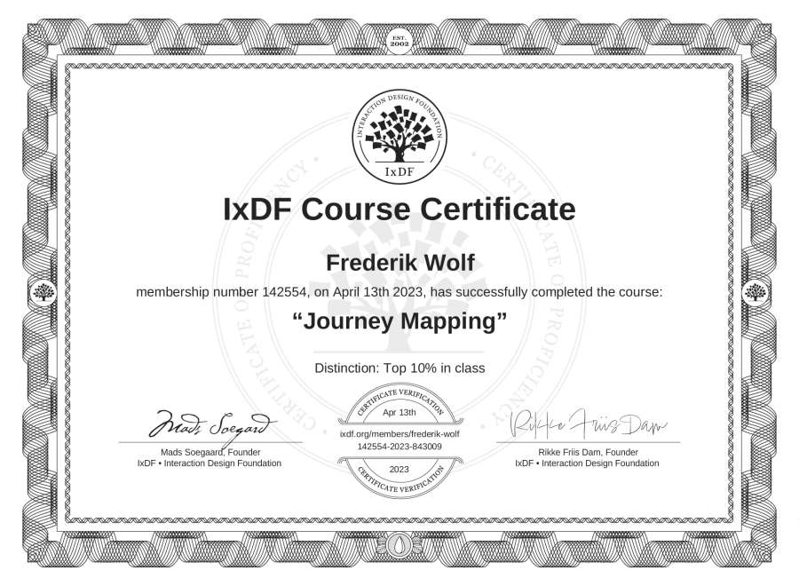 Frederik Wolf's IxDF Course Certificate: Journey Mapping