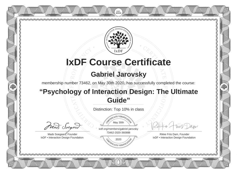 Gabriel Jarovsky's IxDF Course Certificate: Psychology of Interaction Design: The Ultimate Guide