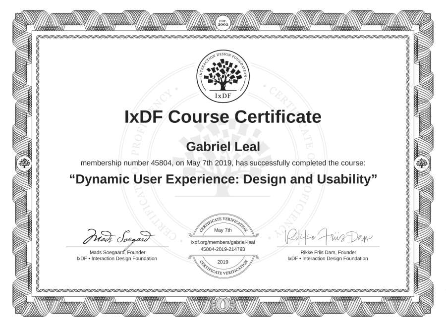 Gabriel Leal's IxDF Course Certificate: Dynamic User Experience: Design and Usability