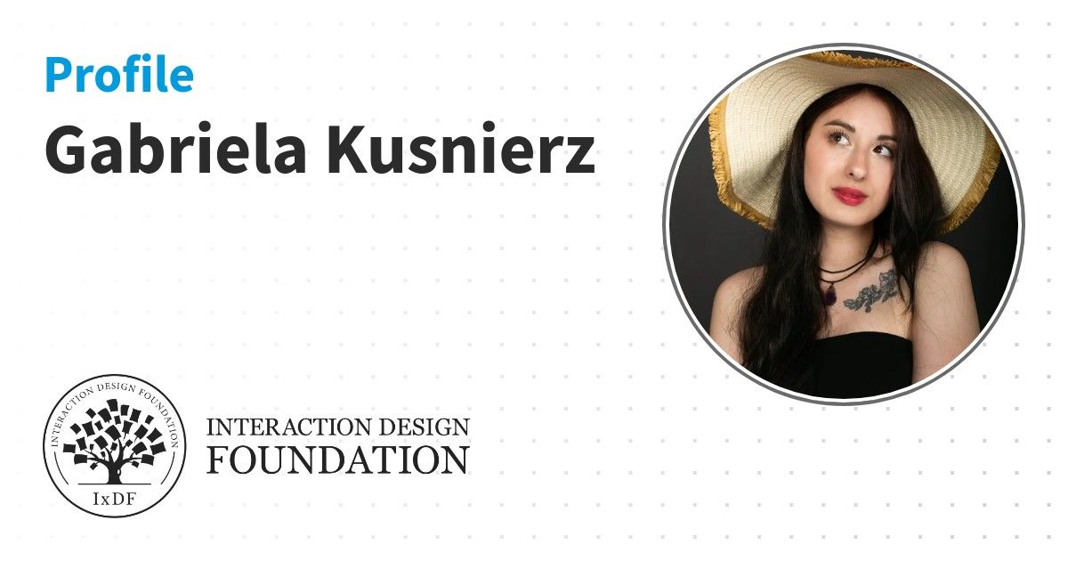 IxDF Course Certificates are awarded to Gabriela Kusnierz in formal recognition of their coursework surpassing the rigorous benchmarks of exceptional performance established by the IxDF Educational Codex.