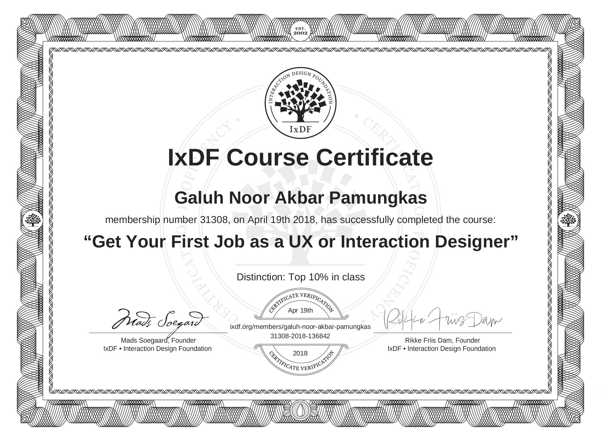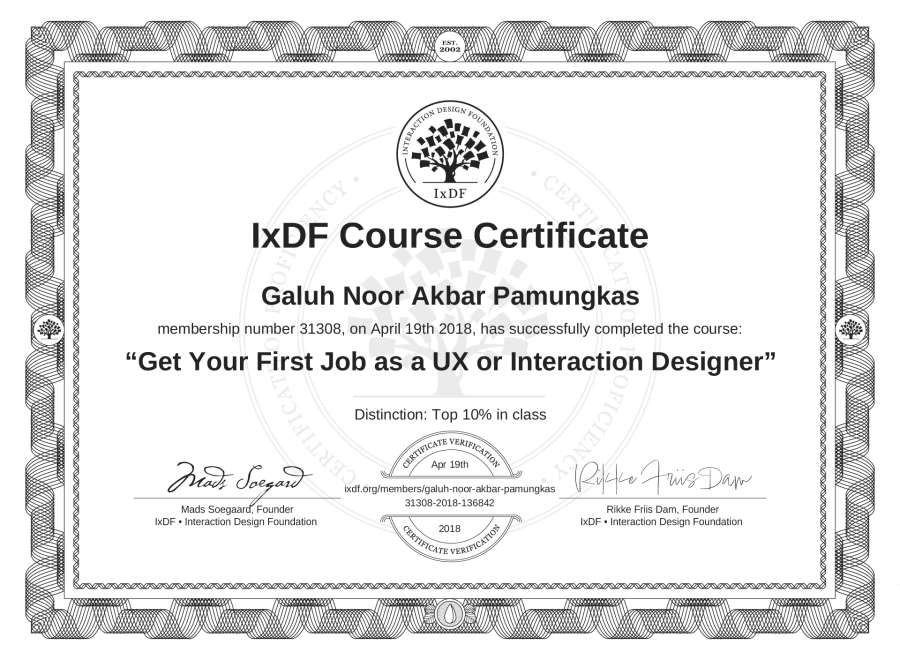 Galuh Noor Akbar Pamungkas's IxDF Course Certificate: Get Your First Job as a UX or Interaction Designer