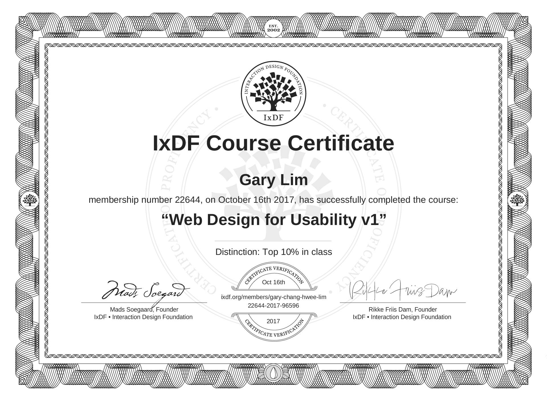 Gary Lim's IxDF Course Certificate: Web Design for Usability v1