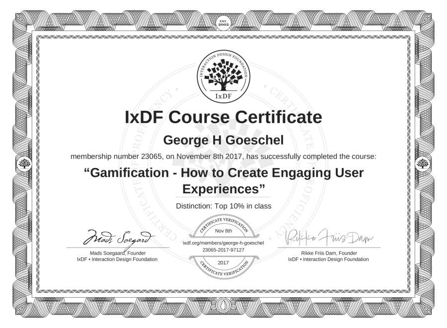 George H Goeschel's IxDF Course Certificate: Gamification - How to Create Engaging User Experiences
