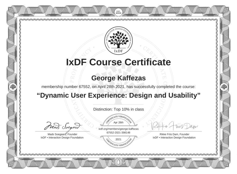 George Kaffezas's IxDF Course Certificate: Dynamic User Experience: Design and Usability