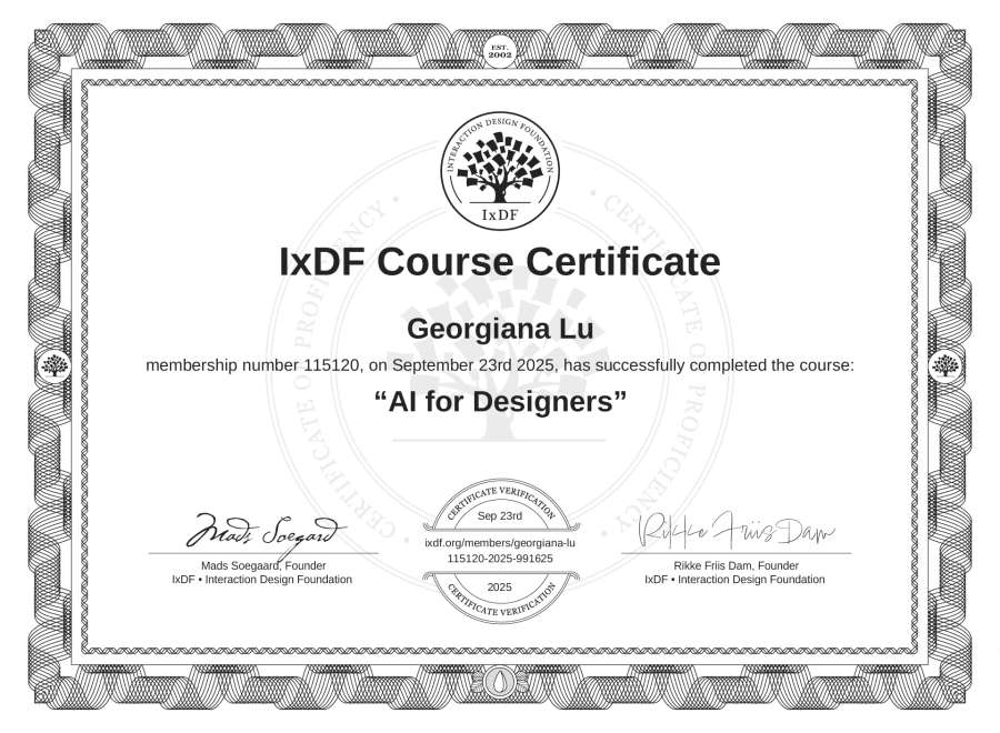 Georgiana Lu's IxDF Course Certificate: AI for Designers