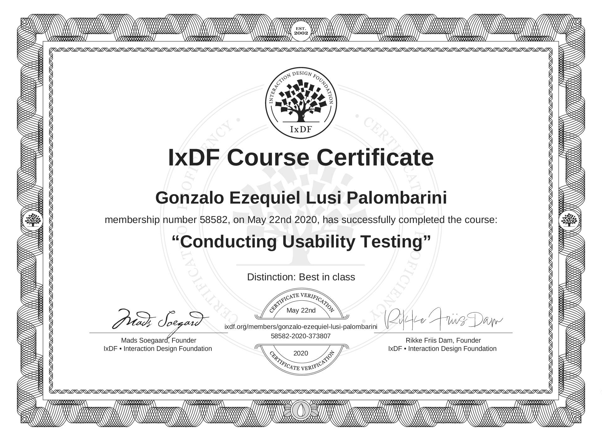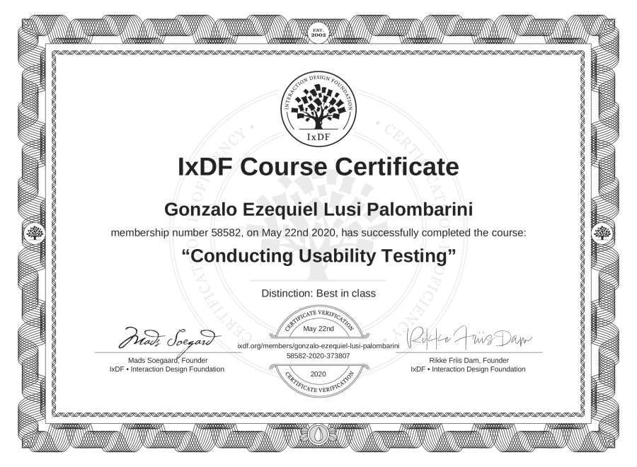 Gonzalo Ezequiel Lusi Palombarini's IxDF Course Certificate: Conducting Usability Testing
