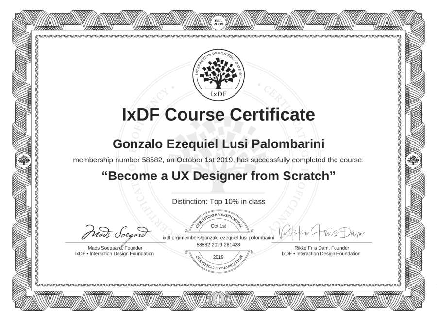 Gonzalo Ezequiel Lusi Palombarini's IxDF Course Certificate: Become a UX Designer from Scratch