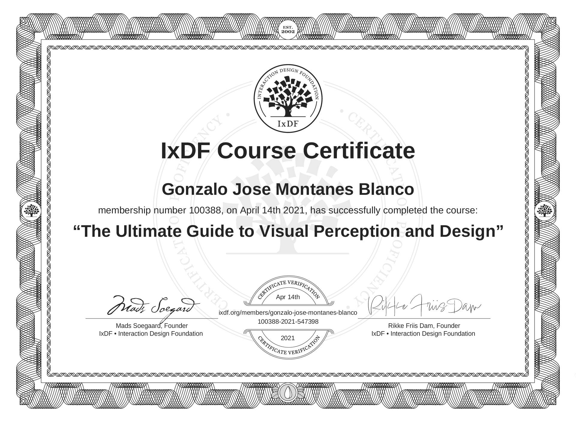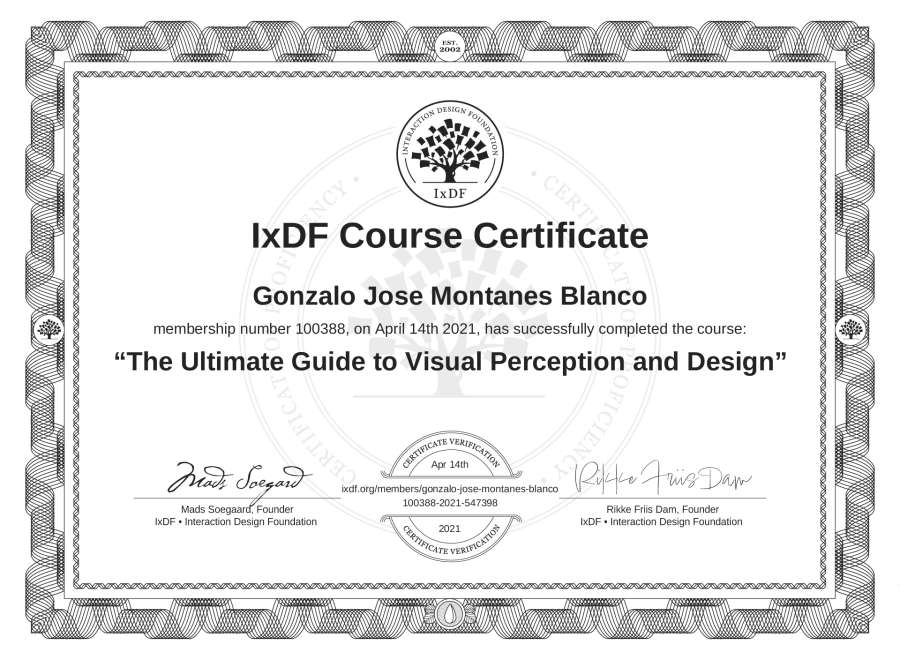 Gonzalo José Montañés Blanco's IxDF Course Certificate: The Ultimate Guide to Visual Perception and Design