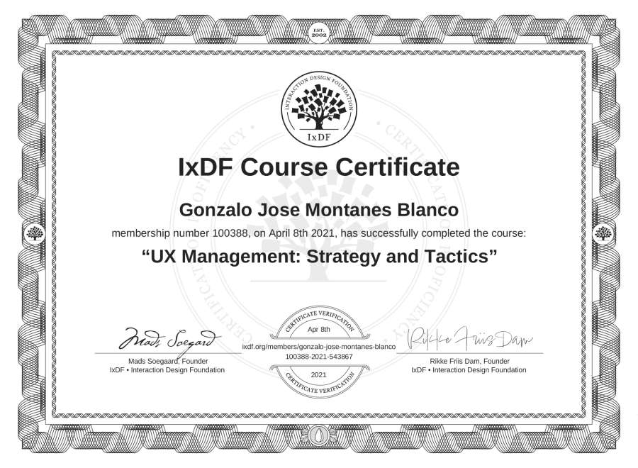 Gonzalo José Montañés Blanco's IxDF Course Certificate: UX Management: Strategy and Tactics