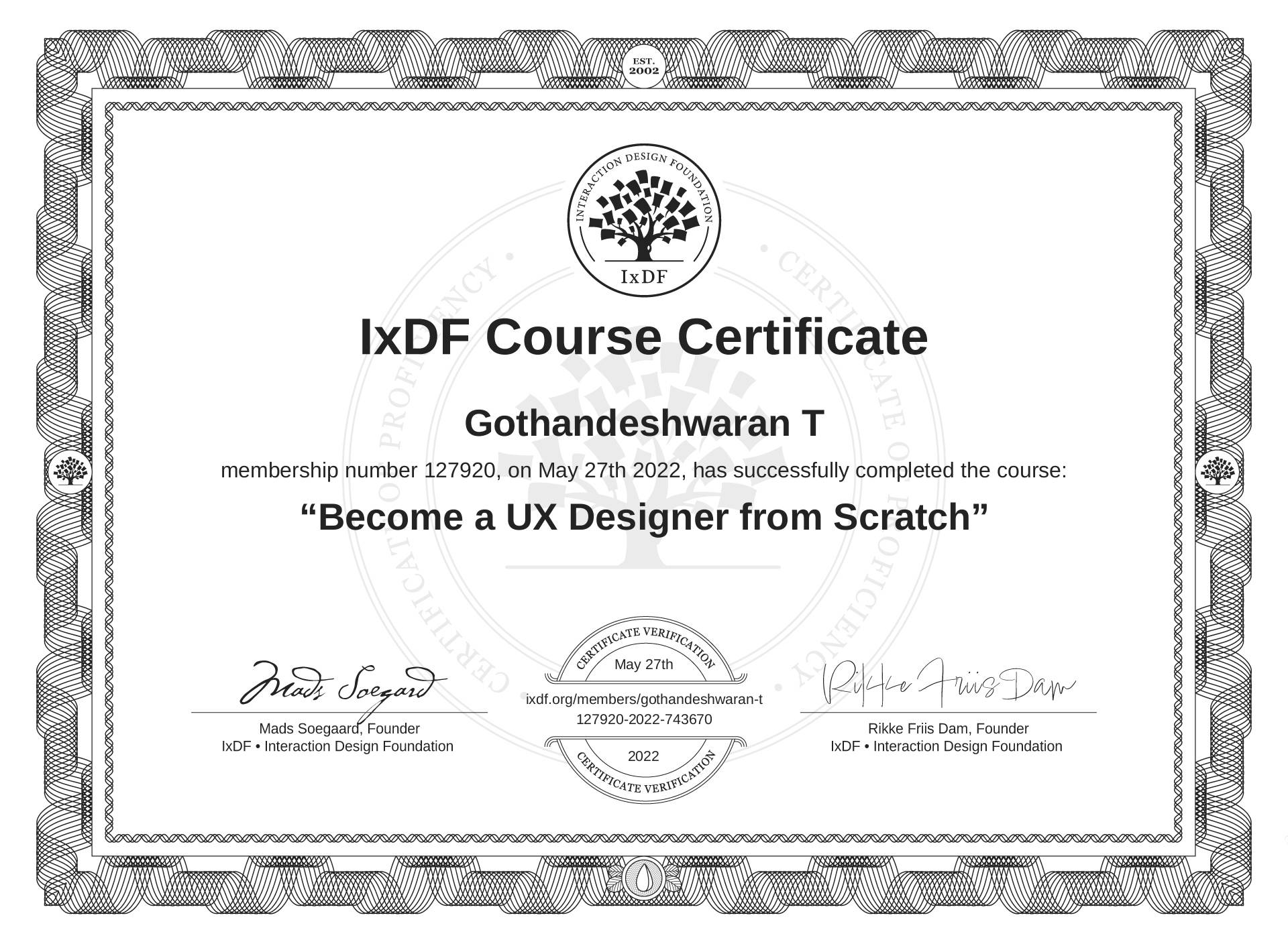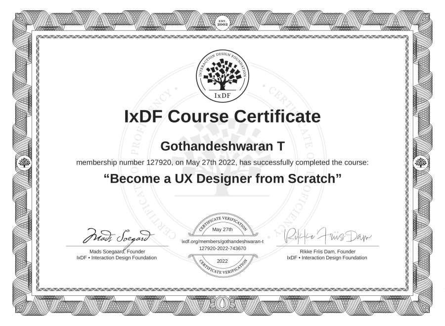 Gothandeshwaran T's IxDF Course Certificate: Become a UX Designer from Scratch