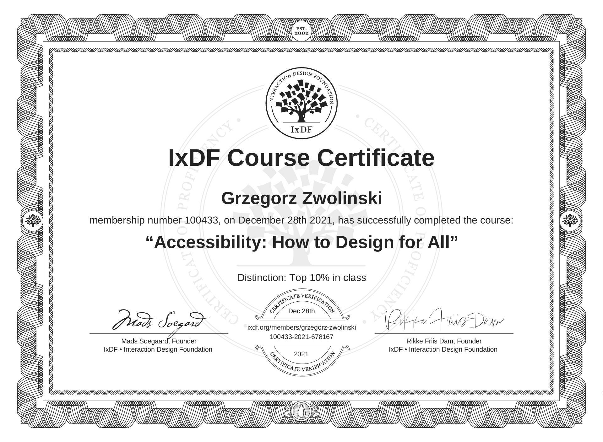Grzegorz Zwoliński's IxDF Course Certificate: Accessibility: How to Design for All