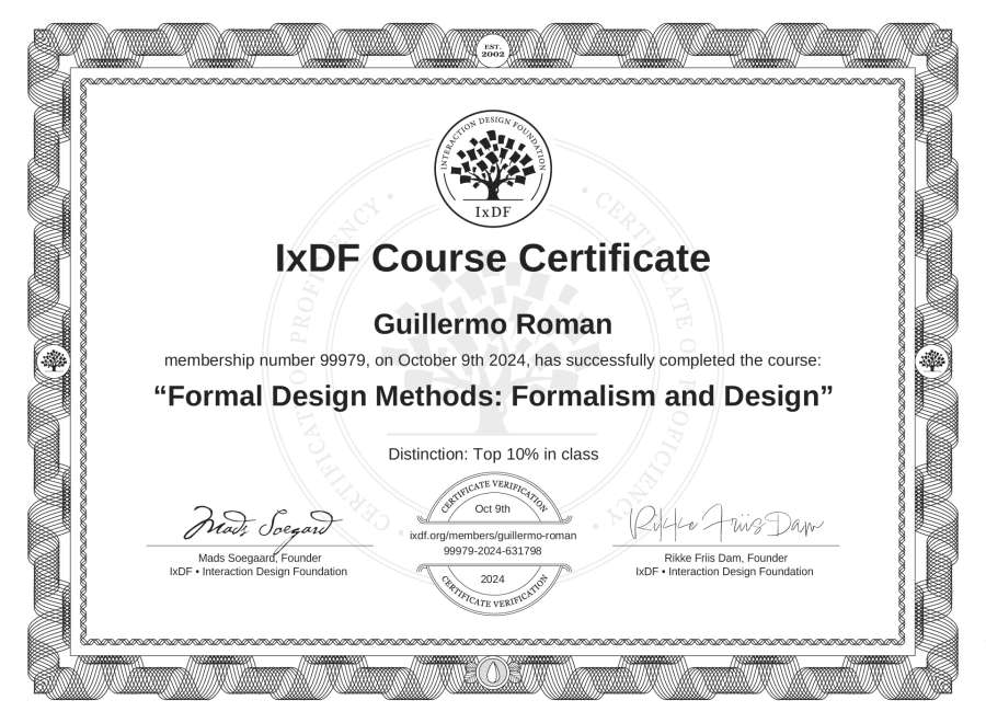 Guillermo Roman's IxDF Course Certificate: Formal Design Methods: Formalism and Design
