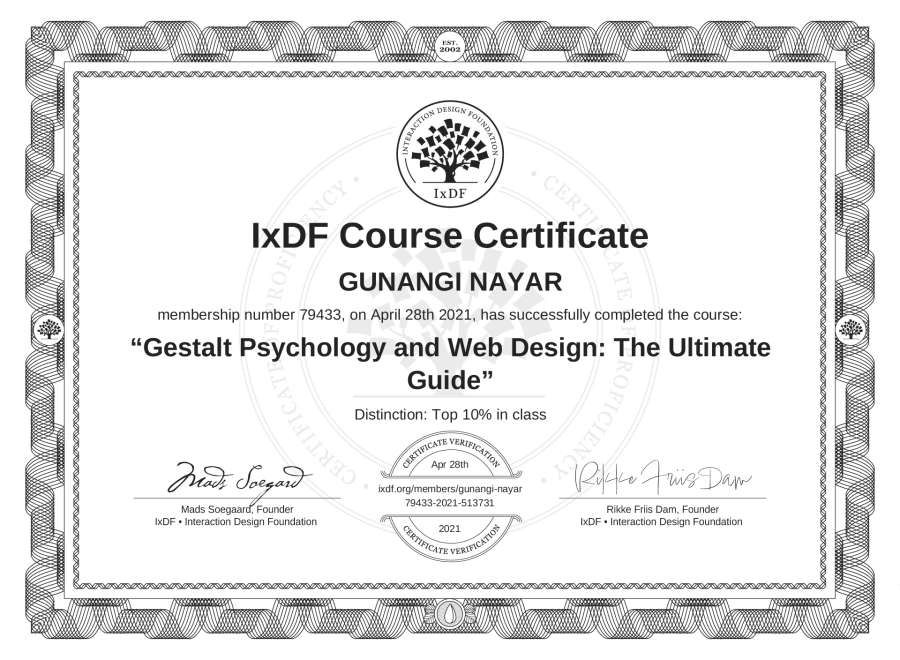 GUNANGI NAYAR's IxDF Course Certificate: Gestalt Psychology and Web Design: The Ultimate Guide