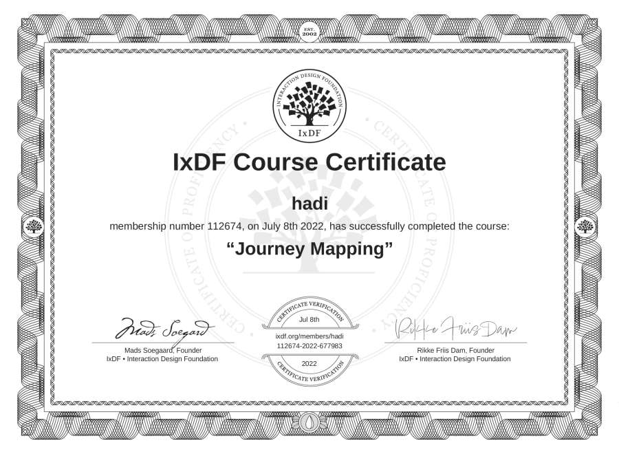 hadi's IxDF Course Certificate: Journey Mapping