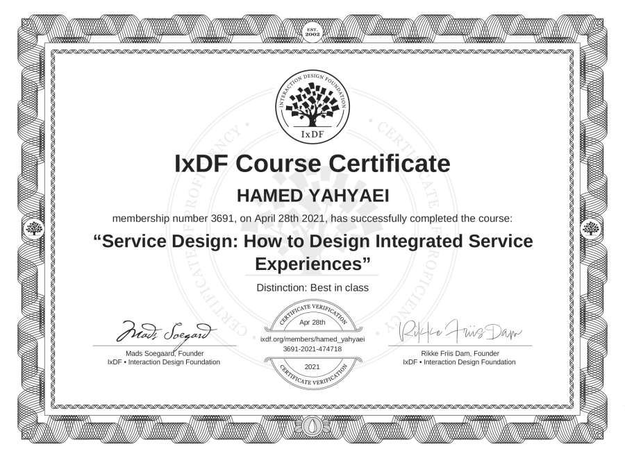HAMED YAHYAEI's IxDF Course Certificate: Service Design: How to Design Integrated Service Experiences