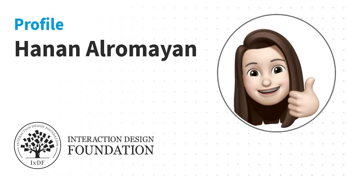 IxDF Course Certificates are awarded to Hanan Alromayan in formal recognition of their coursework surpassing the rigorous benchmarks of exceptional performance established by the IxDF Educational Codex.