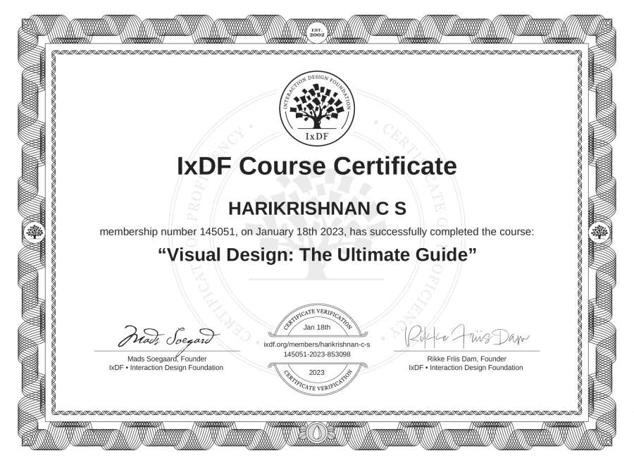 HARIKRISHNAN C S's IxDF Course Certificate: Visual Design: The Ultimate Guide
