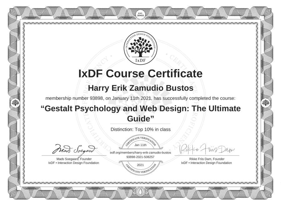 Harry Erik Zamudio Bustos's IxDF Course Certificate: Gestalt Psychology and Web Design: The Ultimate Guide