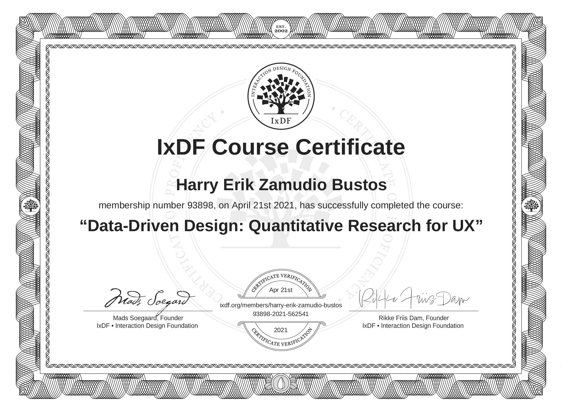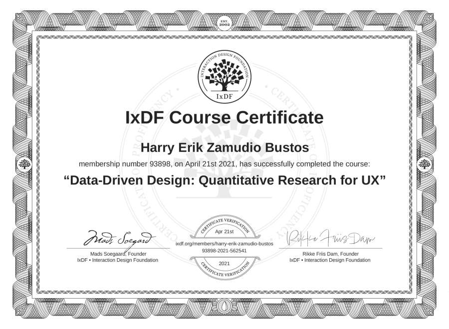 Harry Erik Zamudio Bustos's IxDF Course Certificate: Data-Driven Design: Quantitative Research for UX
