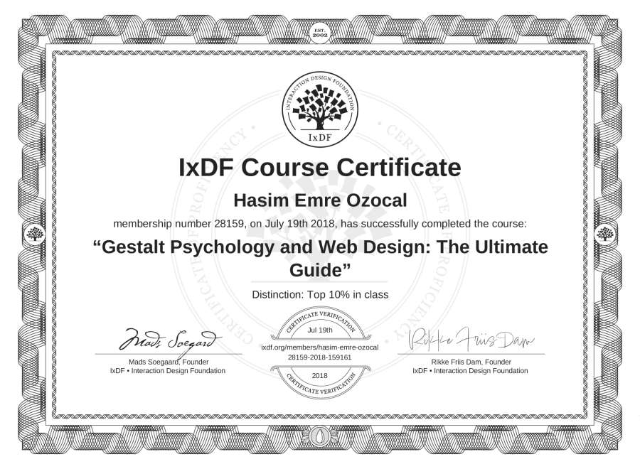 Hasim Emre Ozocal's IxDF Course Certificate: Gestalt Psychology and Web Design: The Ultimate Guide