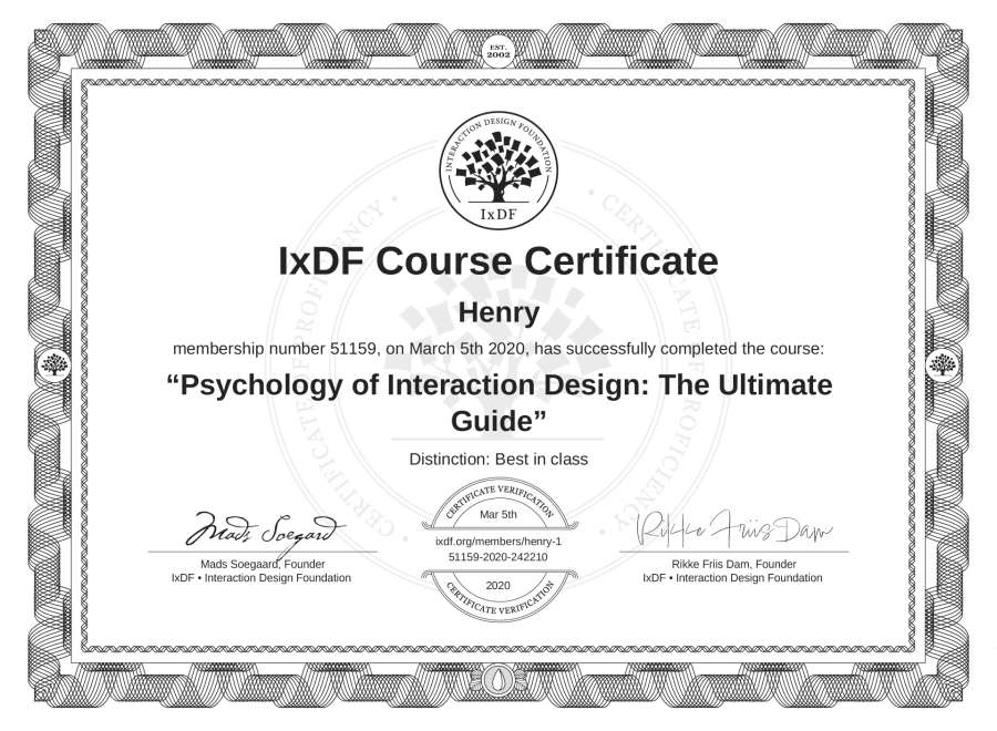 Henry's IxDF Course Certificate: Psychology of Interaction Design: The Ultimate Guide