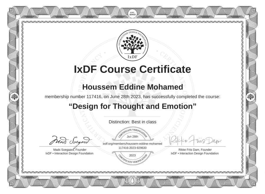 Houssem Eddine Mohamed's IxDF Course Certificate: Design for Thought and Emotion
