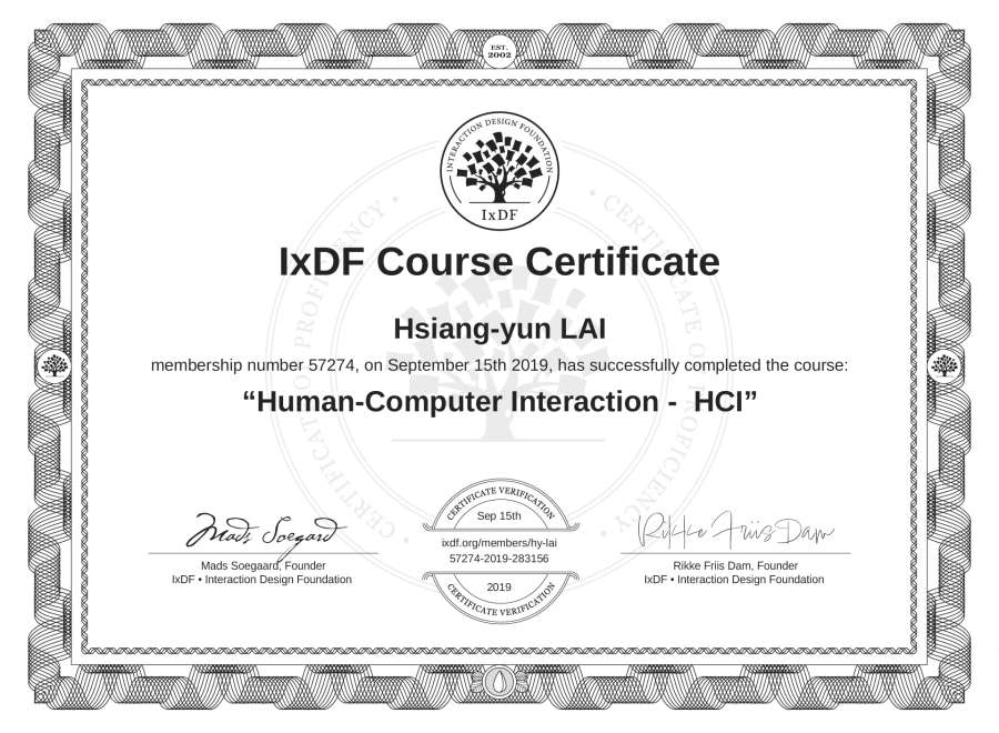 Hsiang-yun LAI's IxDF Course Certificate: Human-Computer Interaction - HCI
